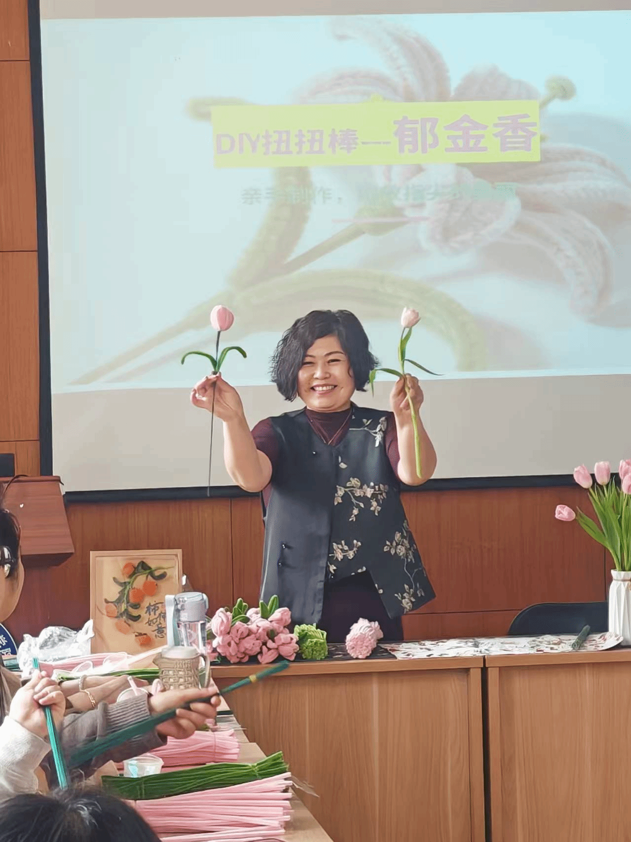 本次活动旨在通过手工创作形式,为女教职工搭建放松身心、互动交流的专属空间。活动前期,学院工会精心筹备,结合女教职工兴趣需求,选定非遗竹节包制作与郁金香抱抱桶组装等兼具观赏性与实用性的项目。活动现场布置温馨雅致,洋溢着暖心氛围。