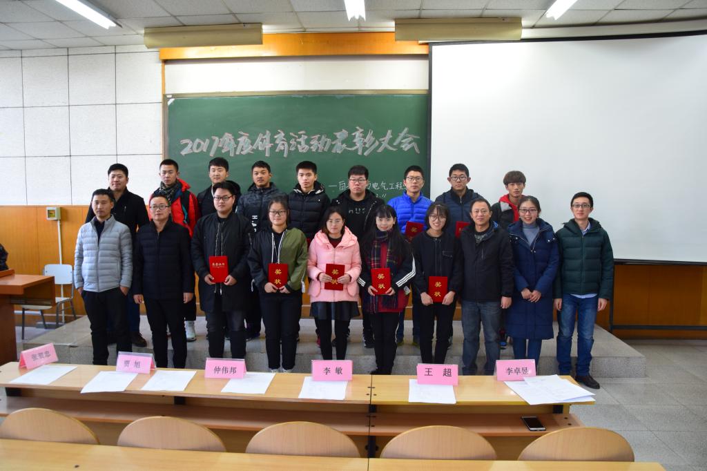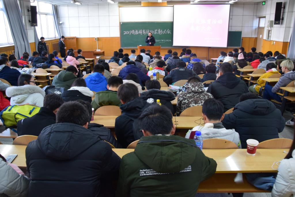 在阶教101举行了2017年度体育活动表彰大会。参加此次大会的有党委副书记李敏,团委书记仲伟邦,辅导员张贺忠、贾旭、李卓昱、王超,及各班级、各社团代表。