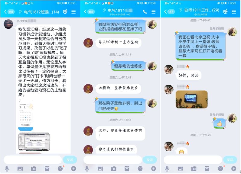 图为郭丽芳与各班沟通习惯养成活动情况的聊天截图