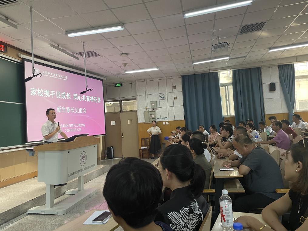 以“家校携手促成长 同心共育待花开”为主题,召开2024级新生家长见面会,旨在搭建家校联合育人平台,加强学院与家长之间的沟通与合作,共同探讨大学生的教育与成长问题,为新生更快融入大学生活奠定良好基础。学院党委书记吴平、院长王冬霞、党委副书记程君、新生班主任、辅导员及数百名新生家长参加本次会议。