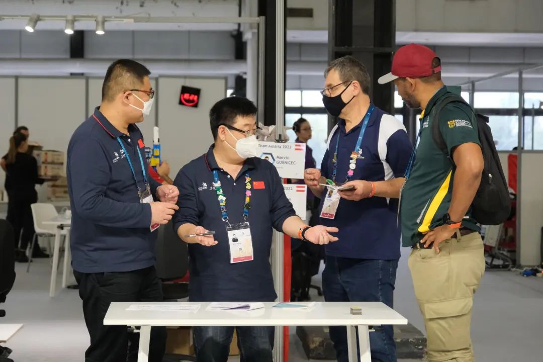 移动机器人项目与日常生活密切相关。选手需根据主办方提供的官方套件,现场组装、调试、编程,然后模拟医院场景,使机器人独立完成“药物”“轮床”的运送和回收工作。由于场地空间和物品尺寸都非常“迷你”,这对机器人移动和机器臂抓取的精度提出了极高要求。在为期四天的比赛中,中国参赛队员侯坤鹏、唐高远准备充分、训练到位,在整机组装、综合测试中表现优秀。在新增加的未知模块比赛中两位选手更是表现优异,成为唯一满分完成任务的队伍,最终以领先第二名16分的绝对优势摘得该项目金牌,这也是移动机器人国家队自2019年第45届世界技能大赛获得首金后,再次蝉联该项目金牌。