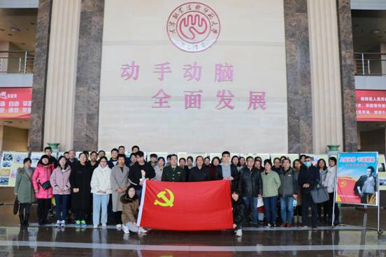 师生做讲解。学院党委组织全体教师、学生党员、入党积极分子参观学习。