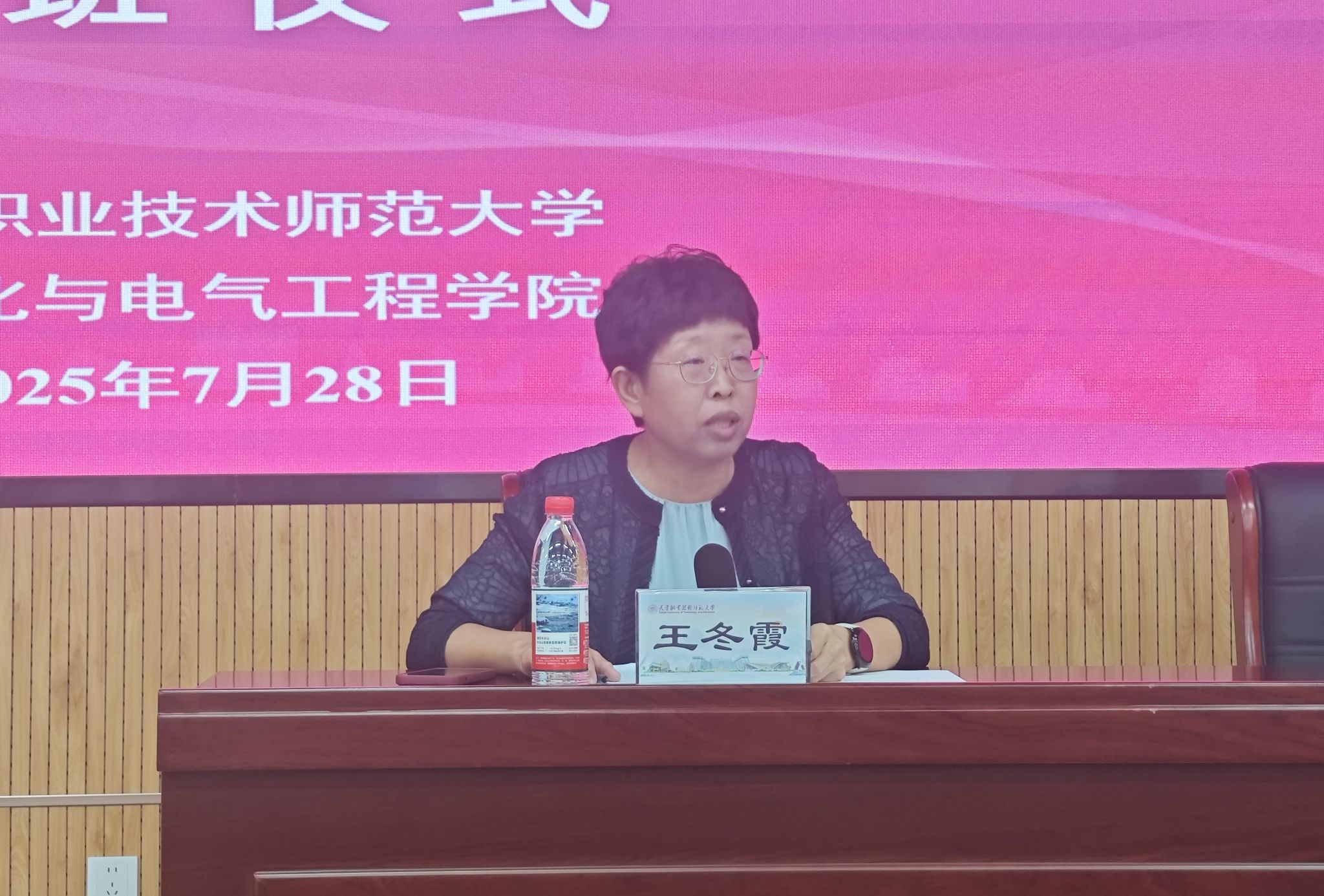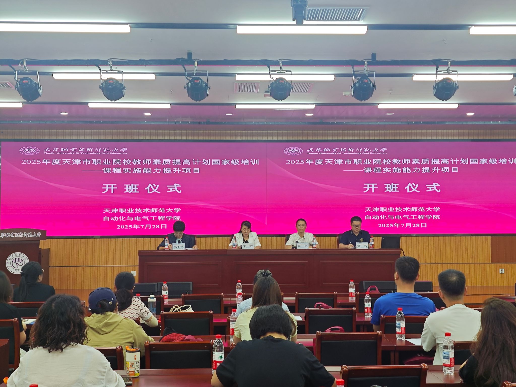 7月28日2025年度天津市职业院校教师素质提高计划国家级培训——课程实施能力提升项目在欧乐影院 开班。校党委副书记李靖出席开班仪式并致辞。本次培训班欧乐影院 承办学院党委书记吴平、院长王冬霞、副院长董建和来自天津市高职院校的32名教师学员参加开班仪式。开班式由吴平主持。