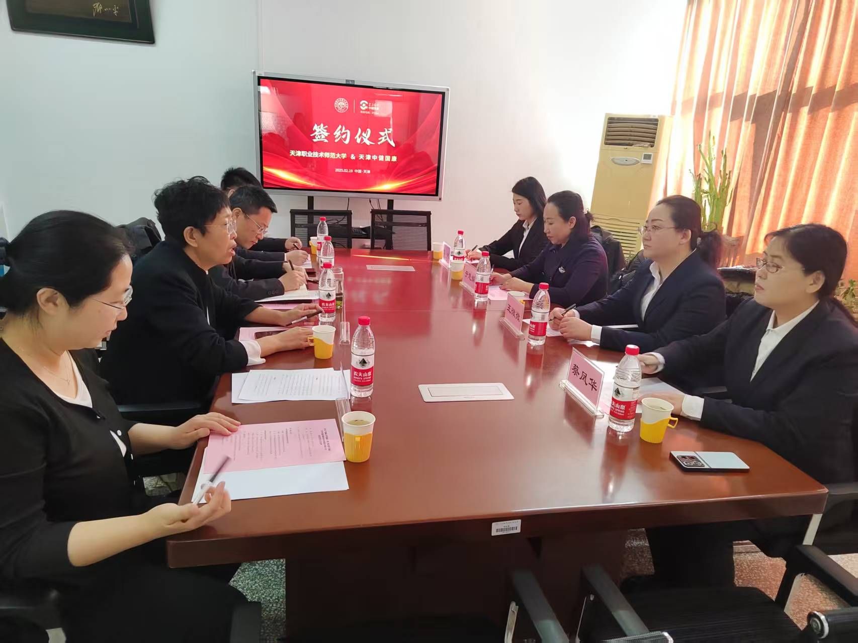 与天津中健国康纳米科技股份有限公司(简称“中健国康”)正式签署产学研合作协议,共建智慧康养研究院。中健国康总裁于慧娟、研发部经理王微微、研发部主管刘佳、财务部主管蔡凤华,欧乐影院