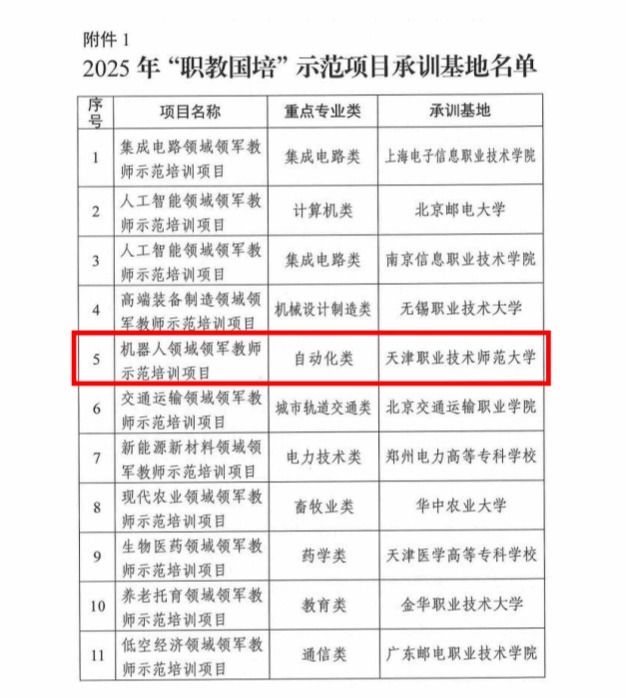 申报的“机器人领域领军教师示范培训项目”,在12家同类竞争单位中成功突围,成为自动化类机器人领域内唯一一家获批单位。