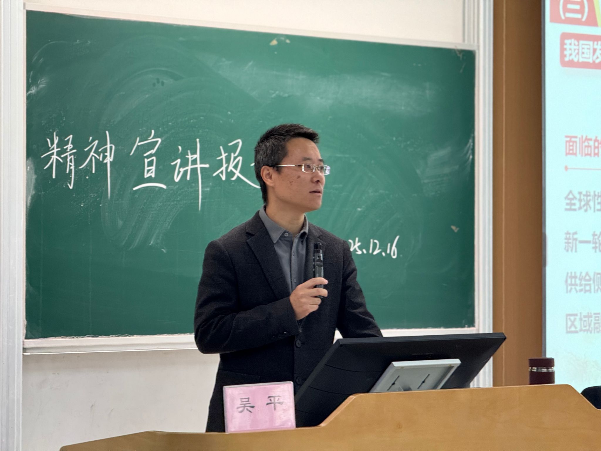为深入学习宣传贯彻党的二十届四中全会精神,推动党中央重大决策部署在学院落地生根,根据学校党委有关要求结合学院工作实际,12月16日下午,欧乐影院 党委书记吴平,党委副书记、院长王冬霞党委副书记、副院长兼纪委书记程君,党委委员、副院长董建分别面向学院本科生、研究生开展党的二十届四中全会精神专题宣讲。