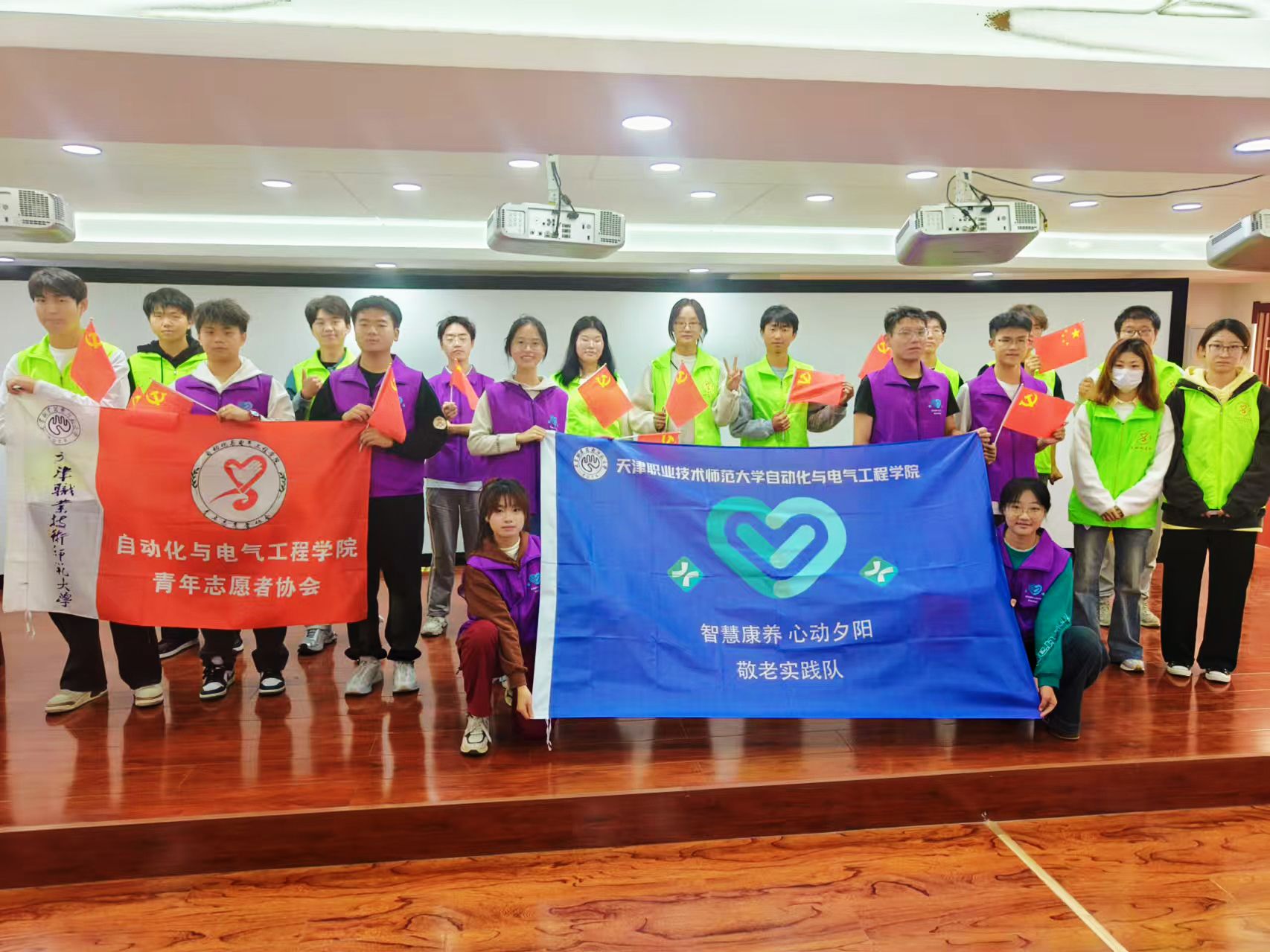 青年志愿者协会联合学校中国敬老与养老文化传承基地组建“智慧康养 心动夕阳”敬老实践队,走进河东区二号桥街道靓东花园社区开展“以青春之力,树爱老之风”敬老爱老活动。