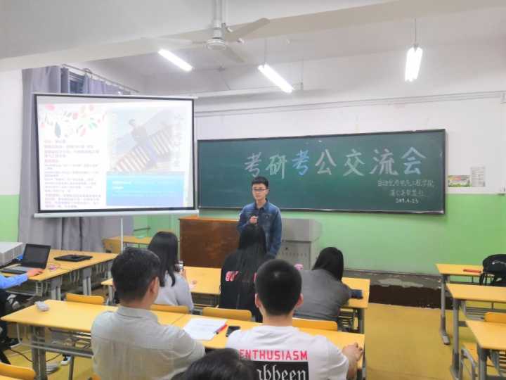 分享会上,成功考取研究生的优秀学生代表李鑫洋(天津大学录取)、冯文静(东北大学录取)、黄允昊(中国科学院大学录取)、胡志豪(中国地质大学录取)从考研院校选择、基础专业课复习准备、导师选择、考研面试技巧等方面介绍了考研成功的心路历程;成功考取国家公务员的优秀学生杨睿(成都铁路公安局重庆铁路公安处录用)着重分析讲解了公务员笔试复习重点、答题技巧以及面试经验。分享会后,与会学生向学长学姐虚心请教,认真听取备考建议。