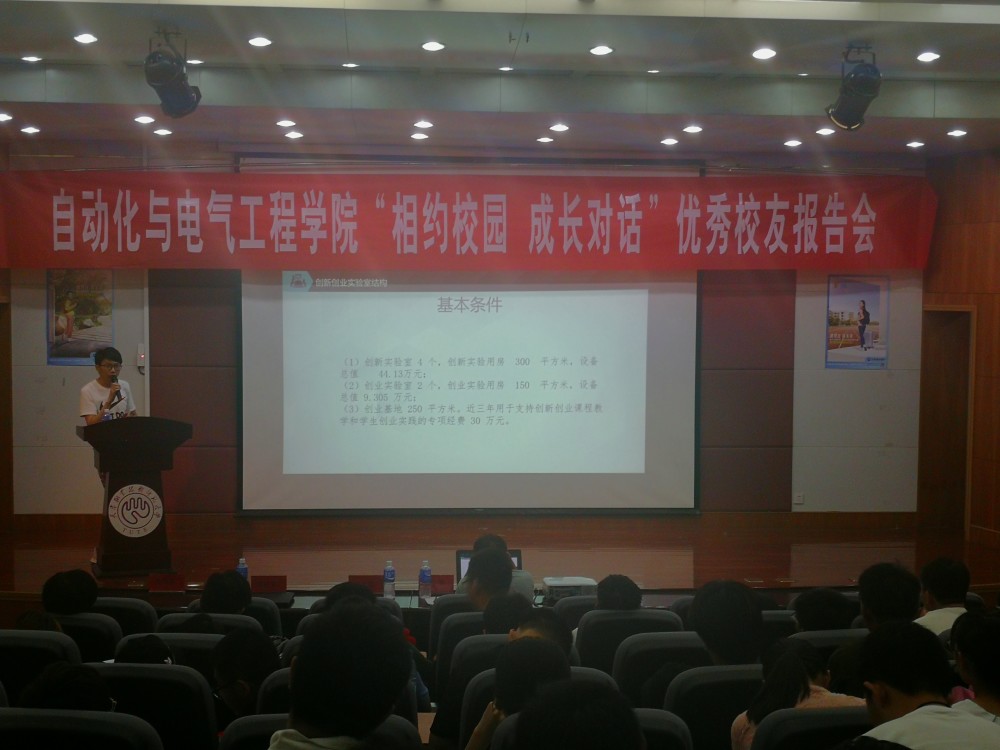他以“成长·蝶变”为题演讲,回顾了自己在母校学习期间和工作过程中的规划和经历,建议大家在大学生活中一定要给自己制定一个规划,并分成一个一个的小目标,逐步把它实现;当自己面临毕业感到迷茫时,也千万不要盲目从众,一定要认清什么是最适合自己的;在学习中,要好好学习专业知识,提升专业素养,同时要多参加比赛,做到知行合一;创新每个人都可以,但创业不是;作为新时代的我们要有大梦想、创新思维,还要具备为人处世、与人合作的能力以及很强的行动力。