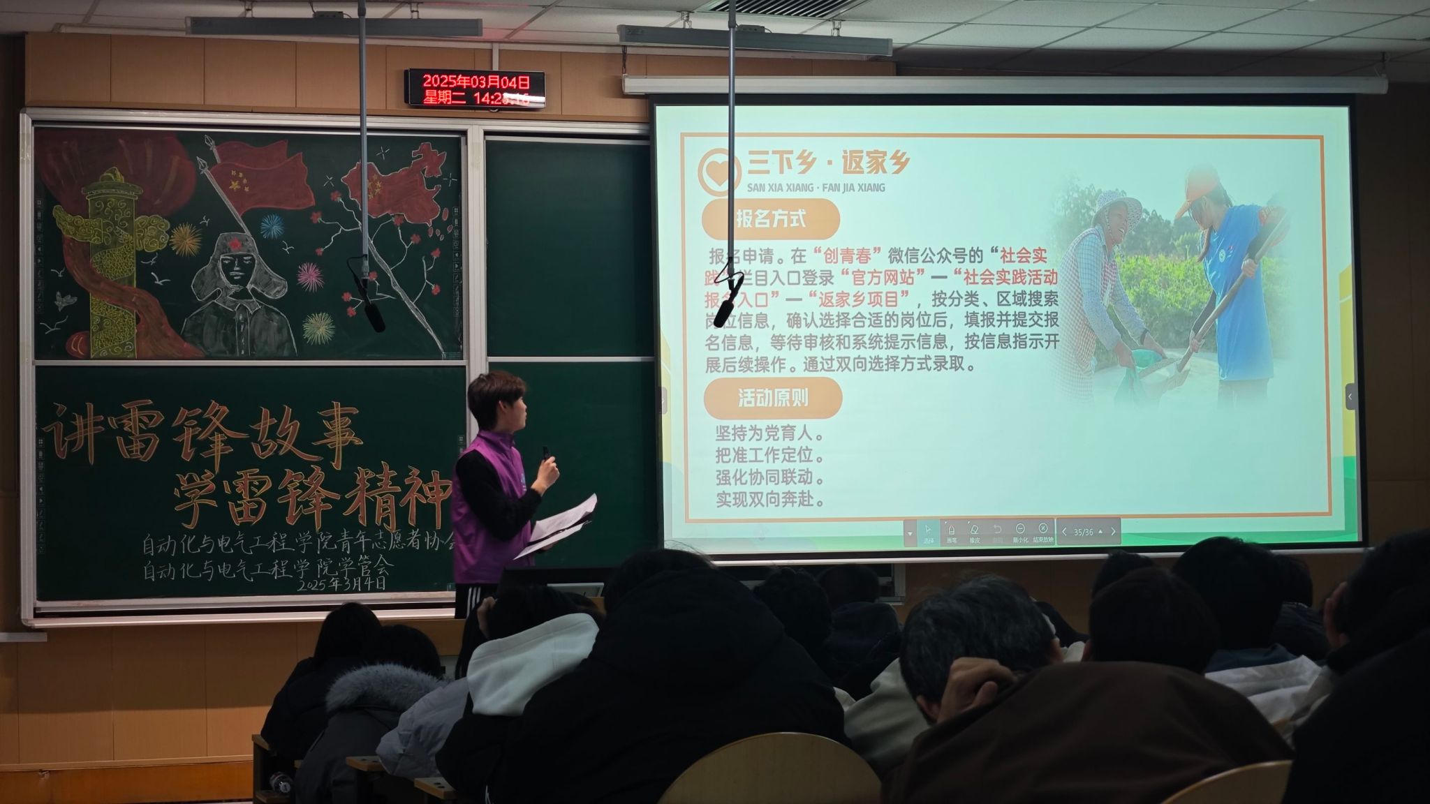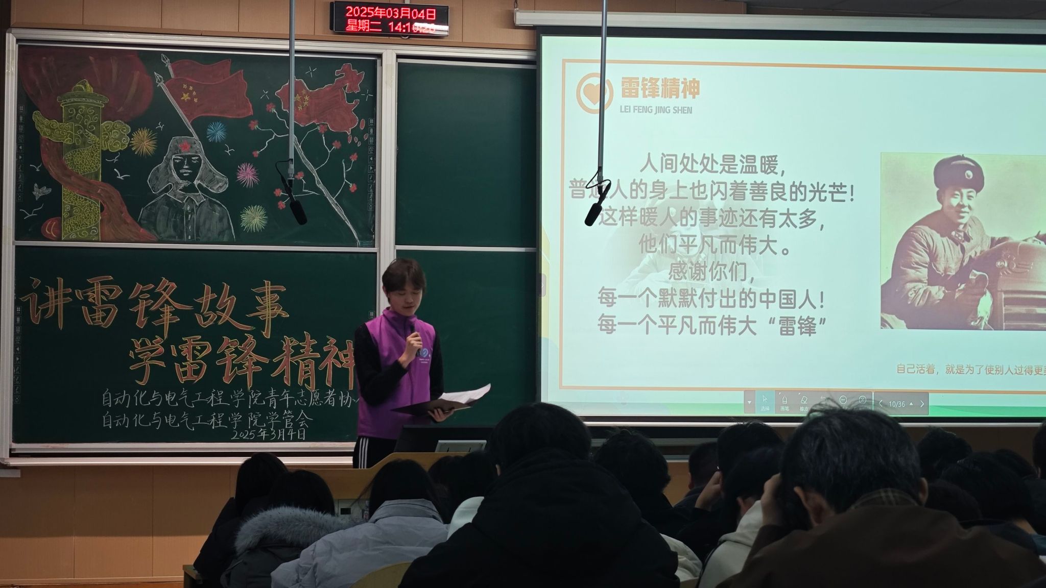 青年志愿者协会联合学院学管会于阶梯教室101开展“讲雷锋故事,学雷锋精神”主题活动。通过多样化的活动形式吸引百余名青年学子到场参加,现场气氛热烈。