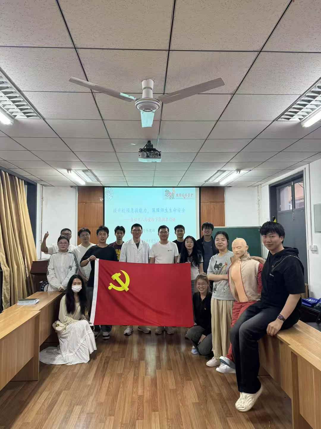 本科生第二党支部联合校医院在自动化东楼205会议室组织开展“救在‘心肺’间,按下‘自动’键”主题急救技能培训活动,特邀校医院医生王迪进行讲解。
