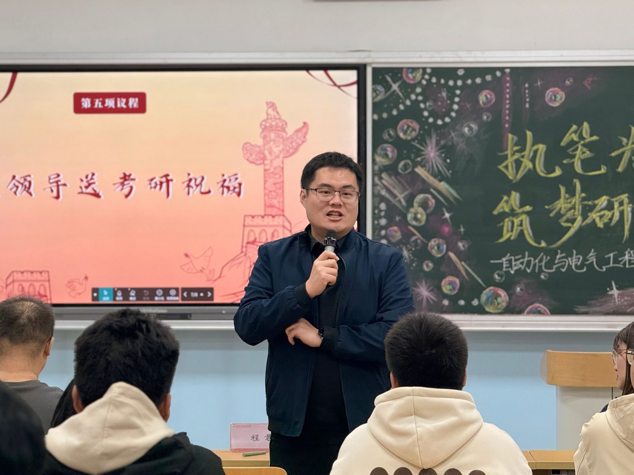 最后,程君与董建为同学们送上真挚祝福,鼓励大家珍惜时光、脚踏实地,以坚韧不拔的毅力攻克难关,在研途上书写精彩篇章,并表示学院将全力为考研学子提供支持与保障,为学生考研之路保驾护航
