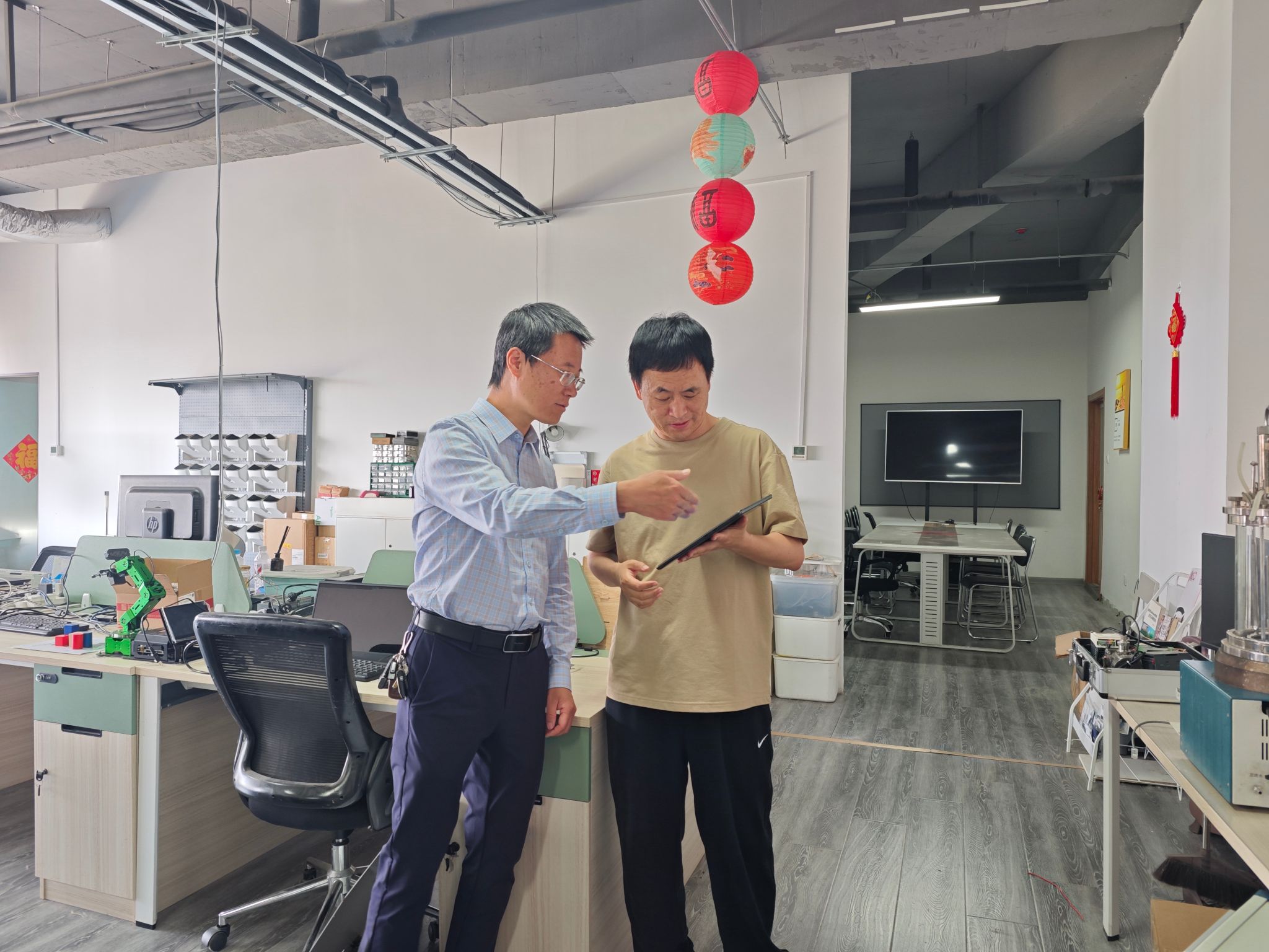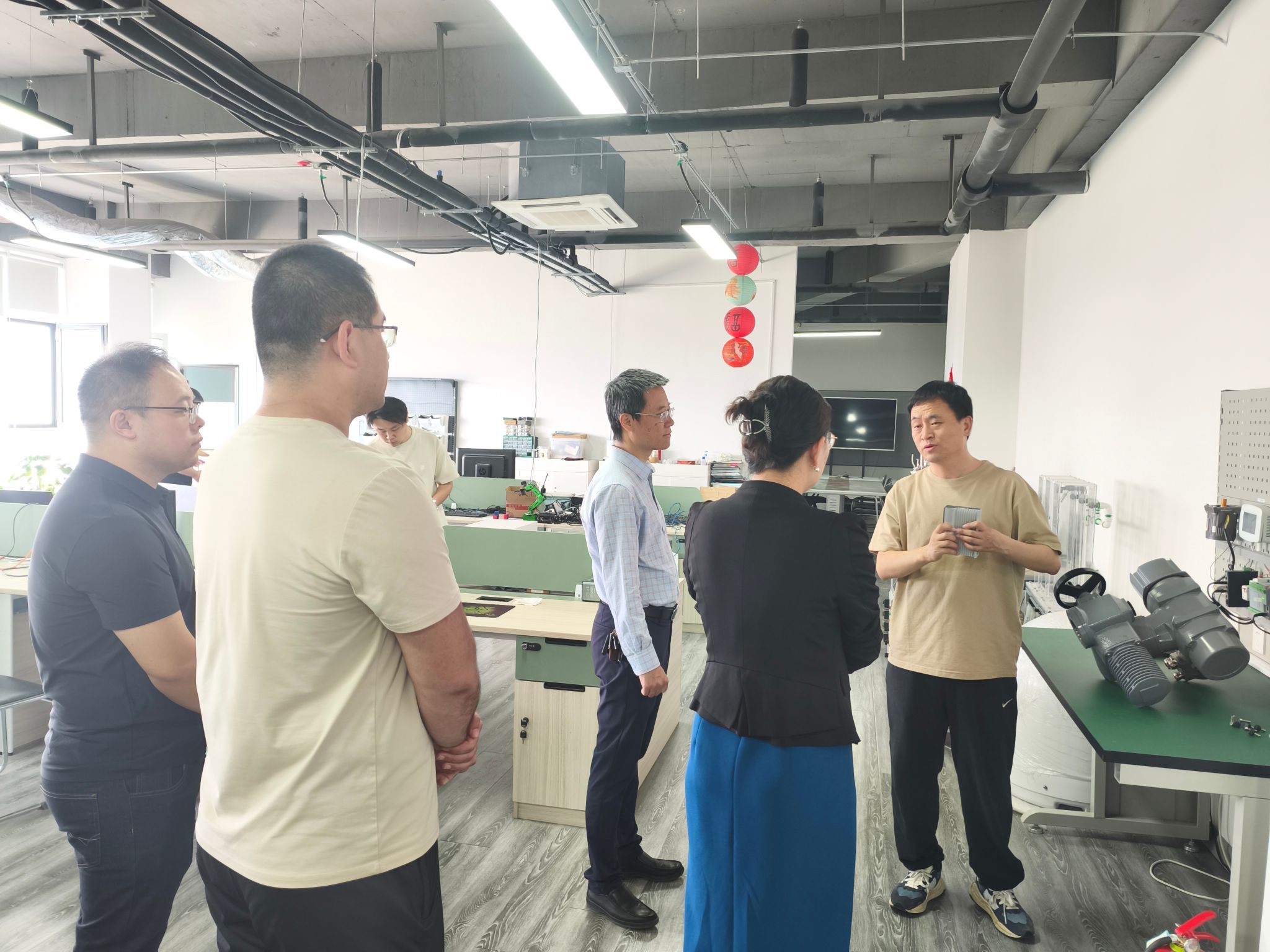 天津腾领电子科技有限公司总经理吕东接待吴平一行参观企业,详细介绍了企业概况、发展规划、岗位设置、用人需求等具体情况。