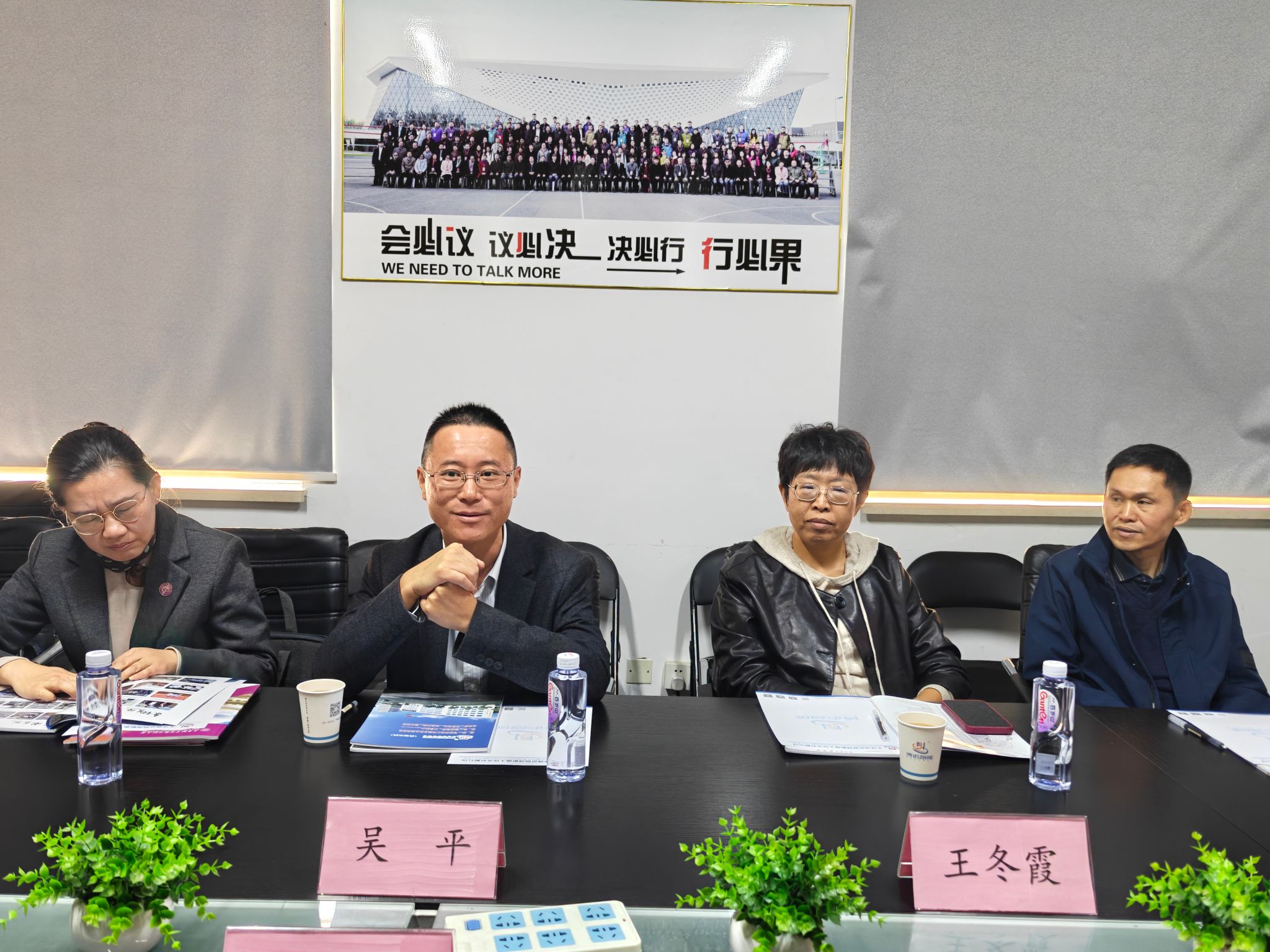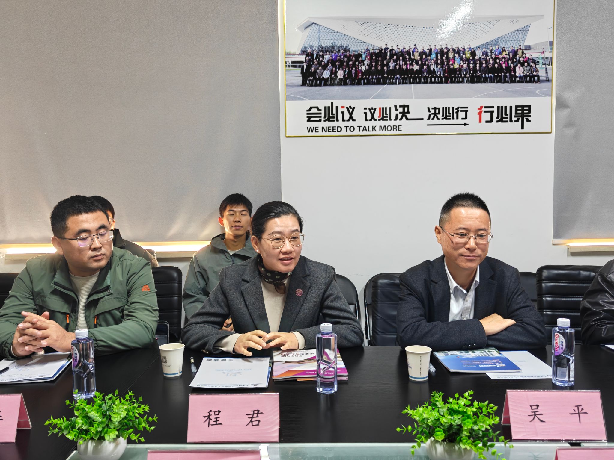 随后,双方就深化校企合作开展座谈交流。周旺发对母院师生的到访表示热烈欢迎,详细介绍了公司的运营现状、未来发展规划及人才需求情况,表达了对母校培养的感激之情以及积极吸纳优秀毕业生、反哺母校发展的强烈意愿。吴平具体介绍学院总体发展情况、人才培养特色与毕业生资源,并对校友企业取得的辉煌业绩表示祝贺,对其长期以来关心支持学院发展表示感谢。王冬霞重点介绍了学院的科研优势、学科建设进展以及未来重点发展方向,希望双方能在科研项目联合攻关、技术协同创新等方面找到更多契合点。程君详细介绍了学院近年来的就业工作情况、毕业生特点及2026届毕业生情况希望以此次走访为契机,搭建更畅通的选才育才渠道。双方围绕创新人才培养模式、共建专业实践课程、联合建设实习实训与就业基地、推动产学研深度融合等议题进行了热烈讨论,并初步在共建学生就业与实习基地、科研合作平台、课程开发展示范中心等方面达成了合作意向。