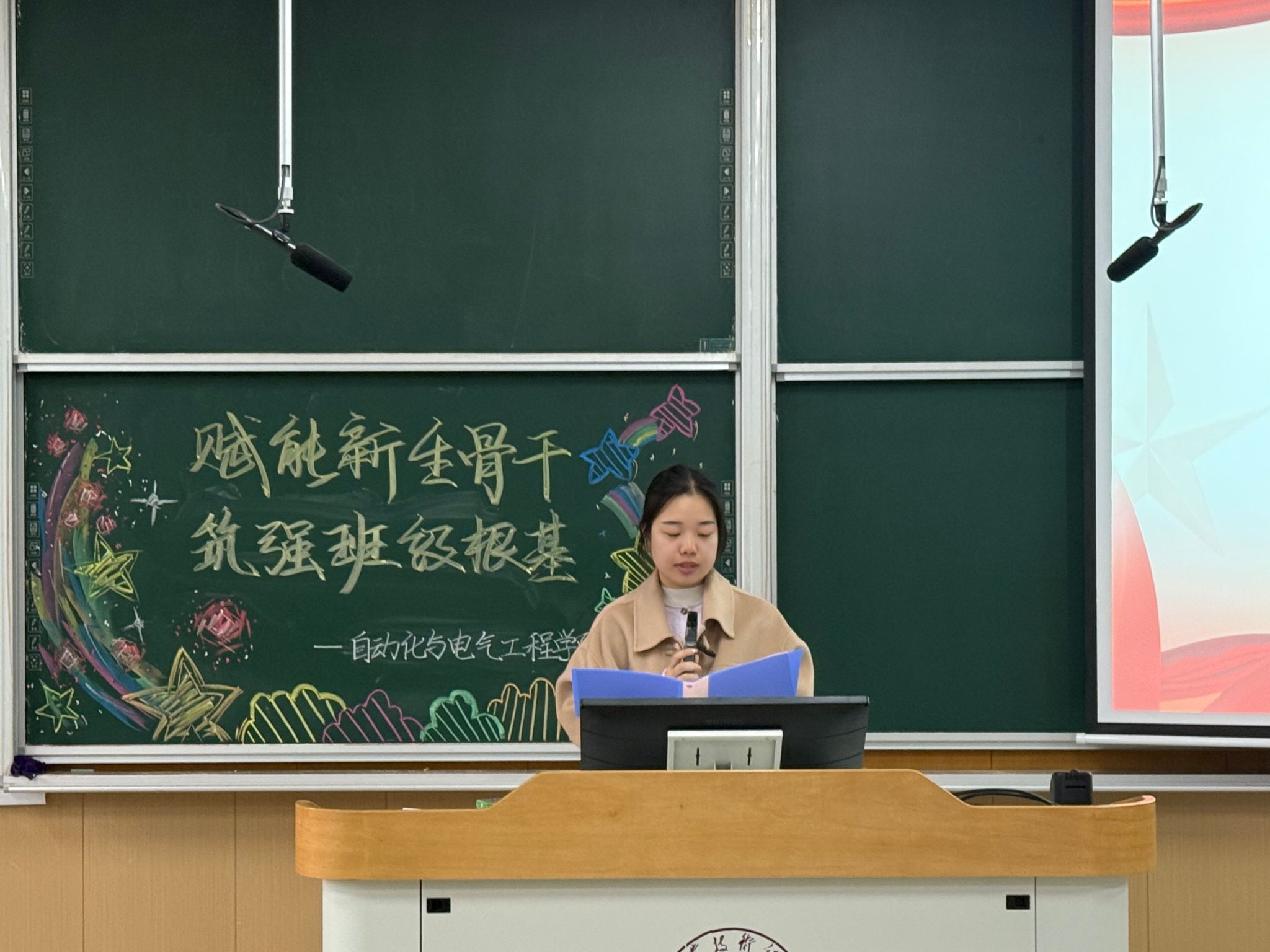 大会伊始,全体与会成员共同观看优秀学生干部工作分享视频。随后,王超宣读《欧乐影院 学生干部管理办法》细致说明学生干部工作准则与行动指引,为后续开展学生工作筑牢根基。在经验交流环节,优秀学生干部代表、院学生会主席团成员洪嘉琪结合自身丰富的工作经历,重点分享学生会及班级建设工作技巧;新生学生干部代表、自2501班班长荣会旺表示将努力提升自身工作能力,切实做好班级建设工作