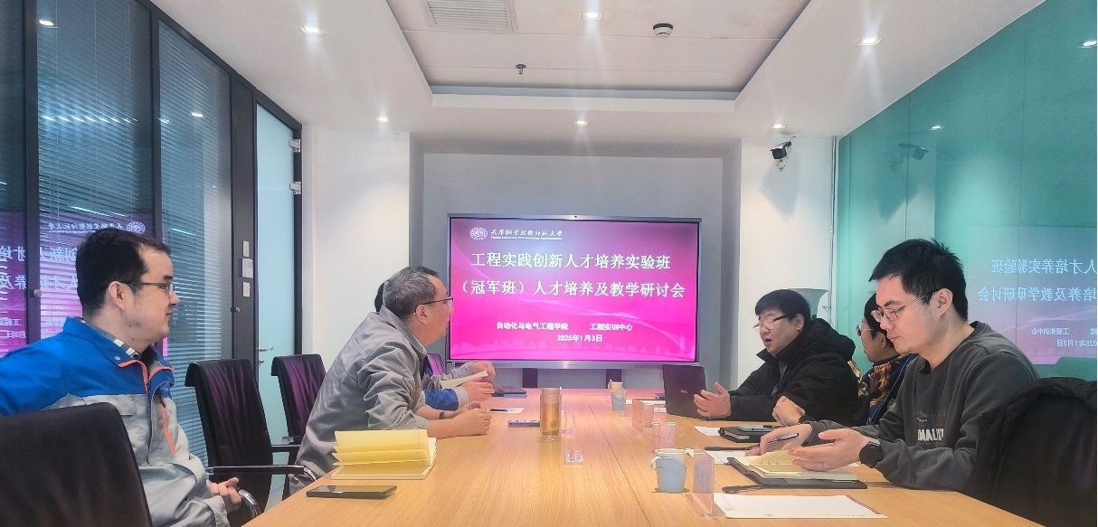 联合学校工程实训中心在工程实训中心A座9楼会议室召开工程实践创新人才培养实验班(冠军班)人才培养及教学研讨会。工程实训中心主任徐国胜、副主任王飞、电气实训教研室主任郝飞,自动化与电气工程学院院长王冬霞、副院长董建、电气技术系主任郑桐、副主任赵金涛以及骨干教师侯兆豪等参加会议。